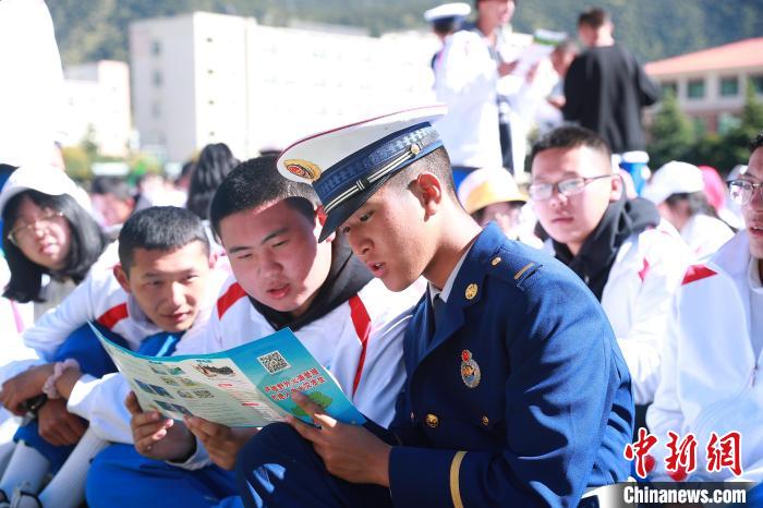 圖為林芝市森林消防支隊走進校園宣傳防火知識。 西繞拉翁 攝