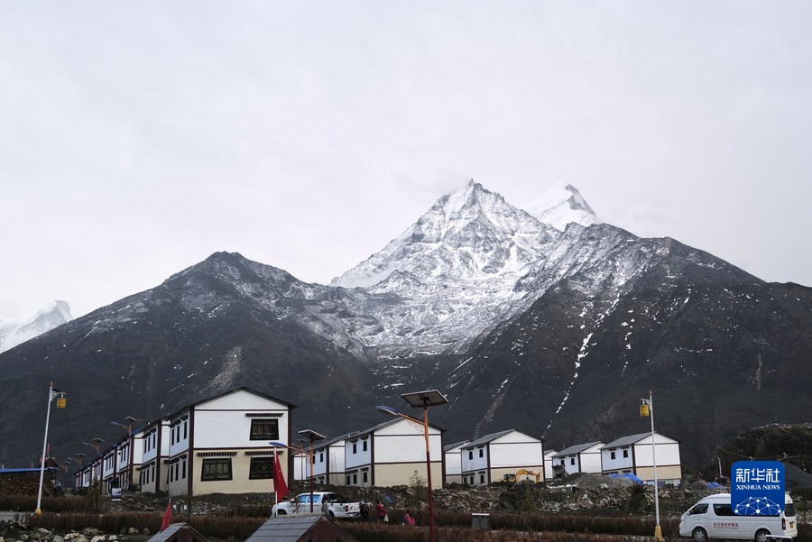 這是雪山下絨轄鄉的藏式新居(4月10日攝)。新華社記者 劉潁 攝