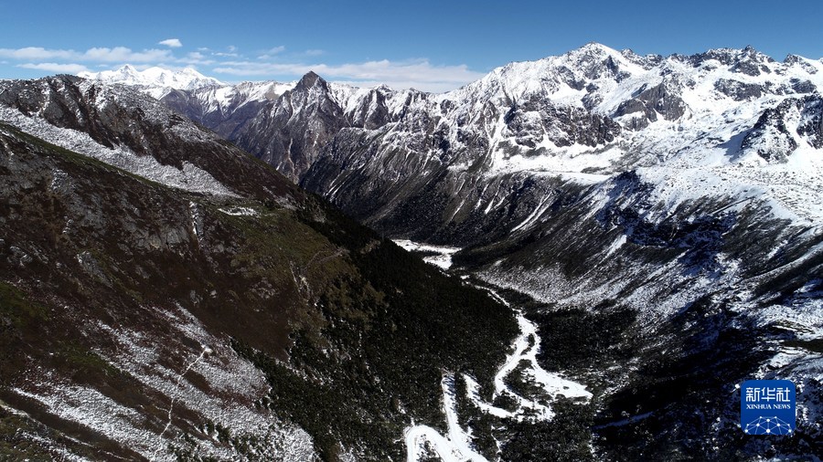 通往西藏洛扎縣拉郊鄉杰羅布村的道路(1月17日攝,無人機照片)。新華社記者 韓曦樂 攝