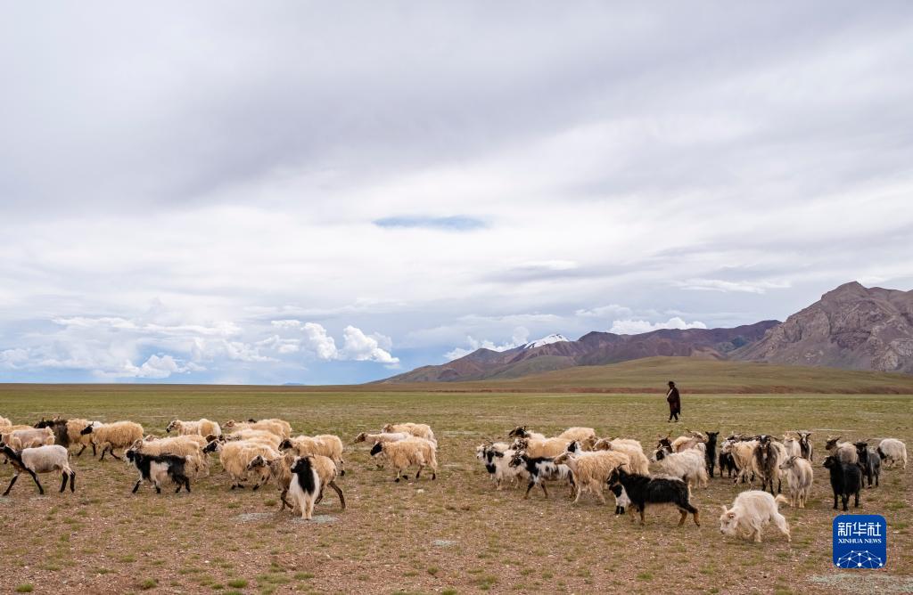 雙湖縣多瑪鄉仲魯瑪村牧民在放牧(7月13日攝)。新華社記者 孫非 攝