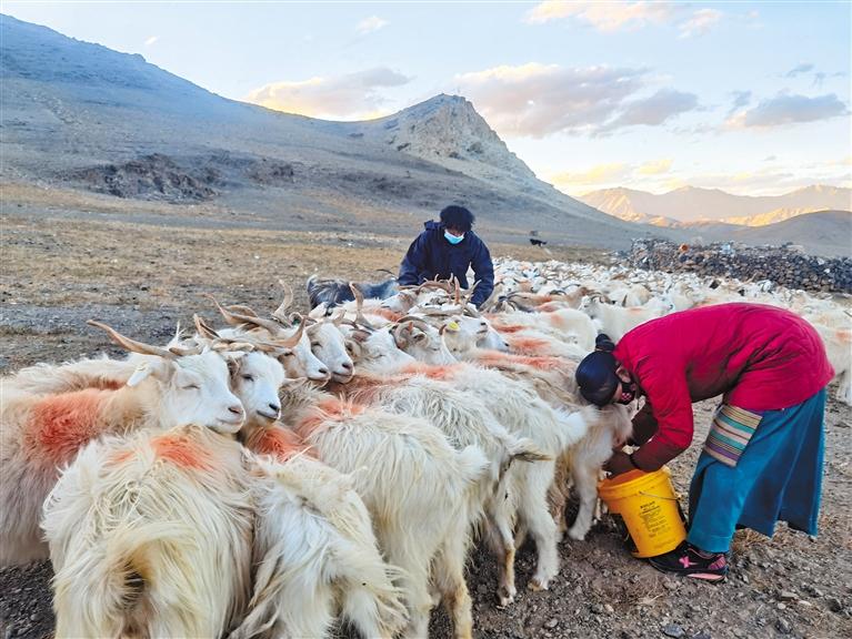 圖為阿里地區(qū)日土縣日松鄉(xiāng)德汝村牧民在擠羊奶。記者 陳荷花 何慧忠 攝