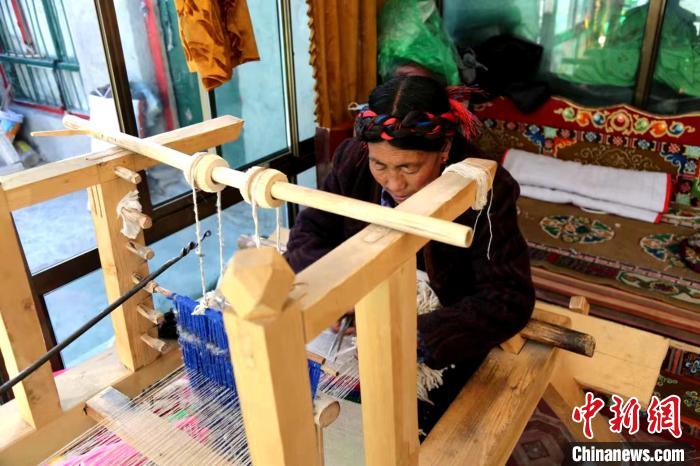 圖為普瑪江塘婦女在編織藏毯。 浪卡子縣網信辦供圖