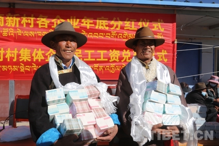 中國西藏網訊 2月2日,西藏自治區山南市乃東區結巴鄉滴新村2022年度集體經濟分紅、集體企業民工工資兌現儀式在滴新村舉行。2022年,滴新村分紅資金為4581662元,比2021年增加726556元。