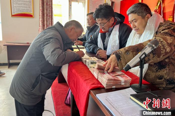 圖為2月19日,西藏那曲安多縣帕那鎮申格卡崗村牧民分紅。 中國鐵路青藏集團有限公司 供圖