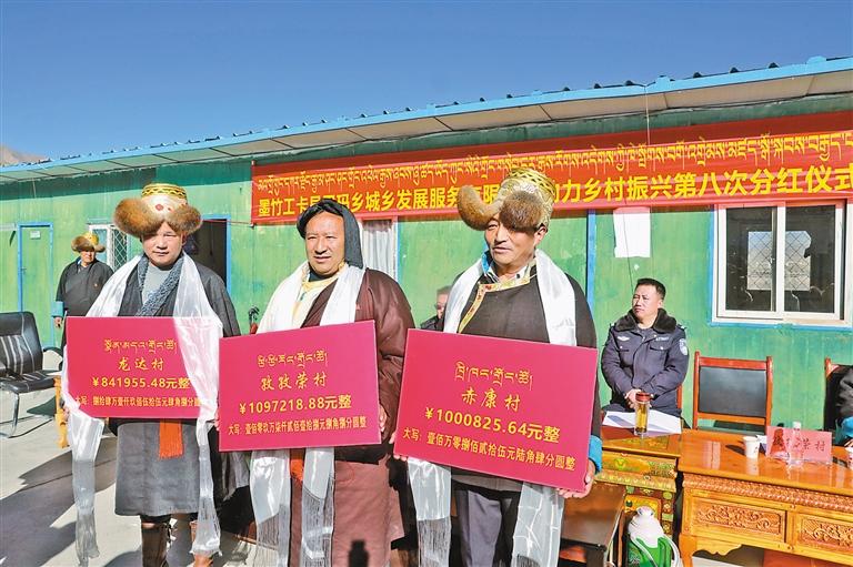 近日,拉薩市墨竹工卡縣甲瑪鄉城鄉發展服務有限公司舉行第八次分紅儀式,為全鄉群眾分紅294萬元。