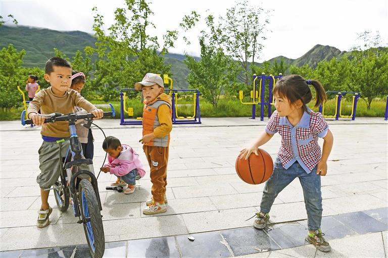 圖為山南市加查縣冷達鄉共康村的孩子們在干凈整潔的廣場上玩耍。 記者 李洲 攝