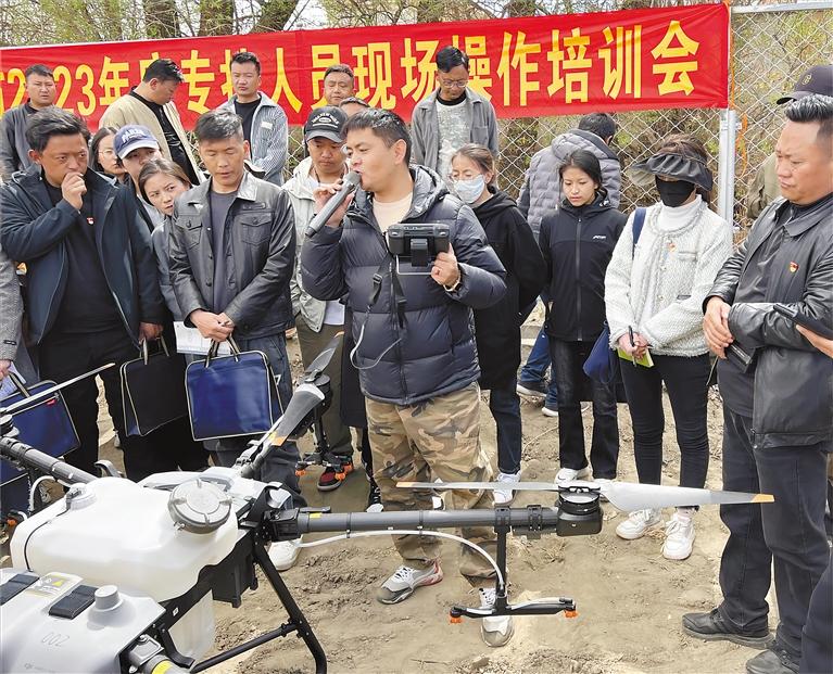 圖為授課老師在講解演示植保無人機結構特點和操作要點。記者 扎西頓珠 汪純 攝