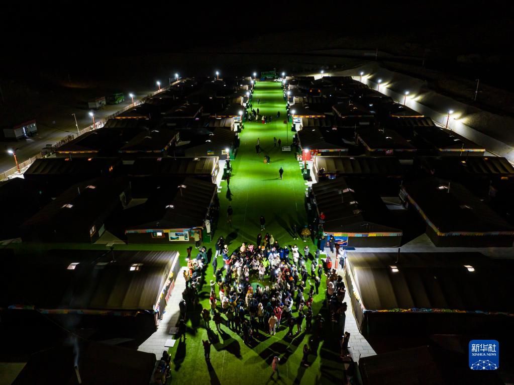 這是夜晚的珠峰游客大本營(yíng)帳篷旅館(5月16日攝,無人機(jī)照片)。新華社記者 孫非 攝