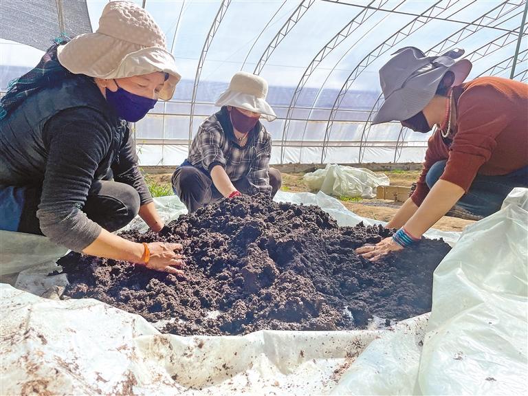 某農業科技公司的員工在大棚里工作。 記者 旦增蘭澤 攝