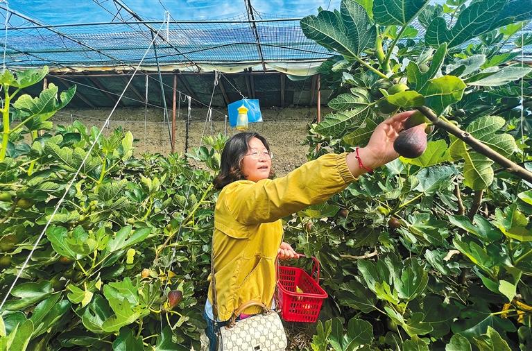 圖為市民在拉薩市達(dá)孜區(qū)純凈生態(tài)采摘園內(nèi)采摘無花果。記者 潘多 攝