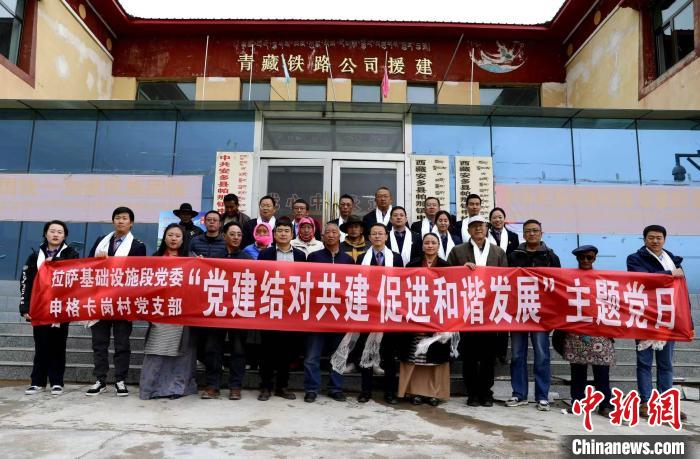 圖為拉薩基礎設施段黨員代表和申格卡崗村黨員代表合影。 馬生明 攝