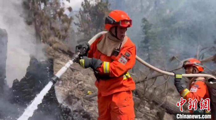 圖為索朗達杰在西藏林芝市察隅縣控檔村參加森林火災撲救任務。西藏自治區森林消防總隊那曲大隊供圖
