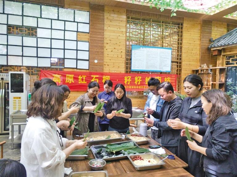 圖為日喀則市行政審批和便民服務局組織開展共聚“民族餐”活動,各族干部在一起包粽子。