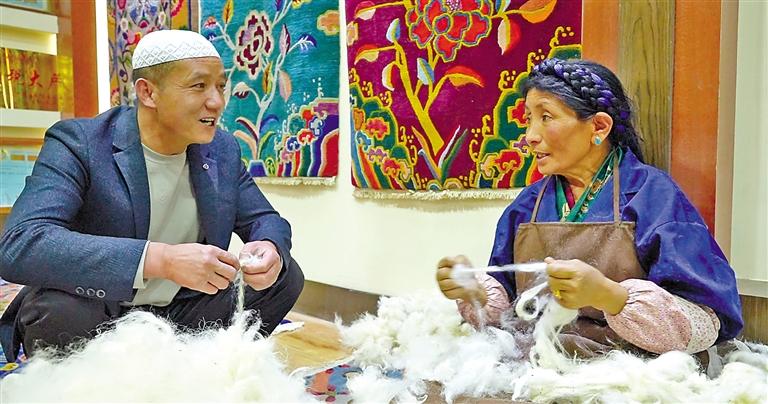 圖為江孜縣組織開展民族文化、民族手工業、民族飲食、民族服裝等沉浸式體驗活動。這是回族群眾在體驗傳統服裝制作工序。