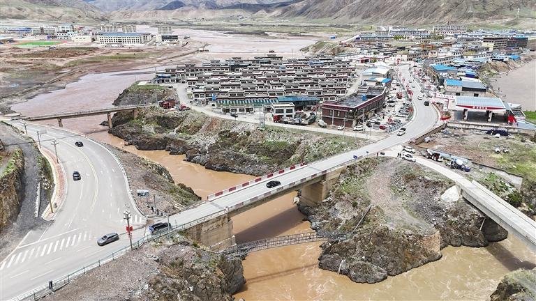 圖為那曲市索縣索曲河與益曲河交匯處暢通的道路和橋梁。記者 趙書彬 萬靖 攝