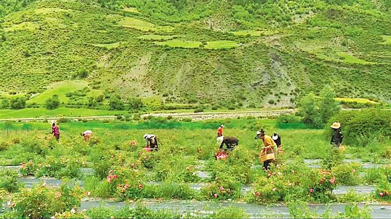 桑多鄉桑多村群眾在村集體經濟產業——云朵玫瑰基地采摘作業。記者 平措郎加 攝