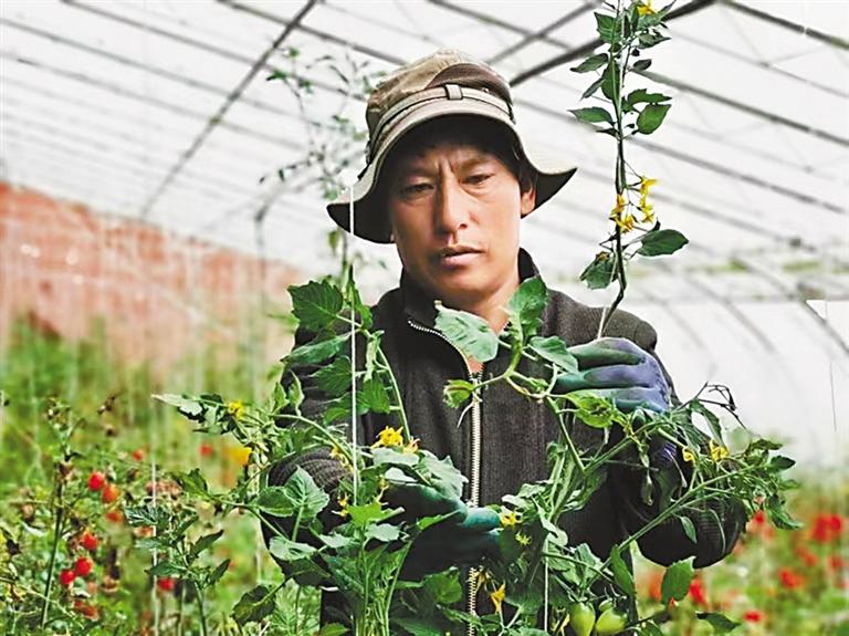 協雄鄉協麥村群眾在村農業生態產業園打理蔬菜。記者 平措郎加 攝
