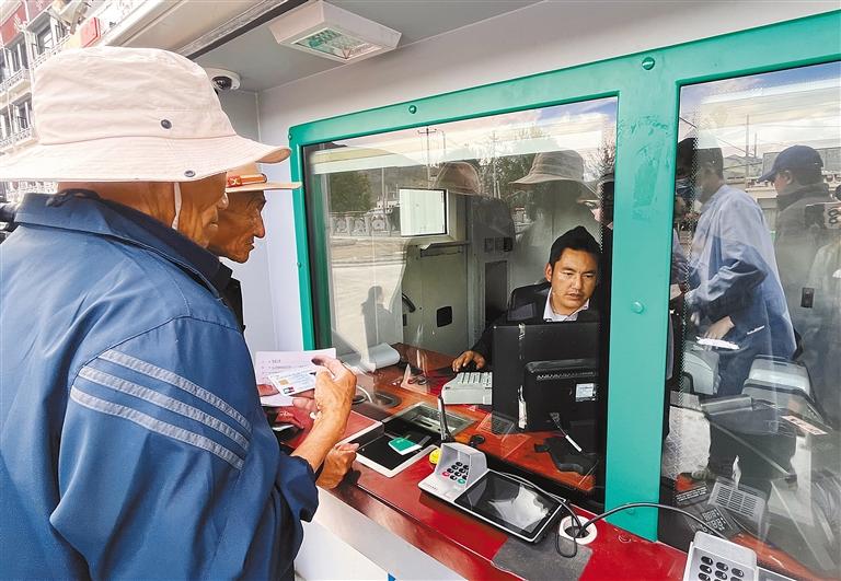 工作人員為老人辦理業務。記者 旦增藍澤 攝