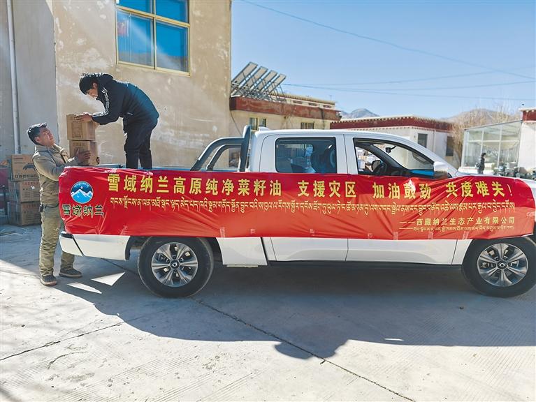 今年1月,西藏納蘭生態產業有限公司運送菜籽油支援定日縣地震災區。