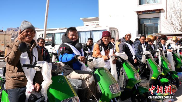 圖為聯(lián)合社員工獲贈(zèng)兩輪電動(dòng)車。普布 攝