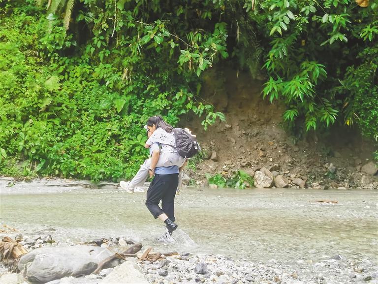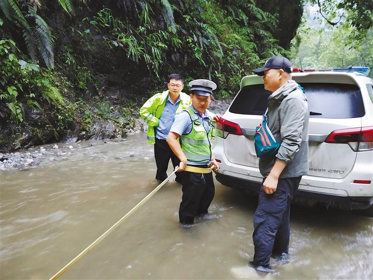 執勤交警全身被雨水浸透,卻仍堅守在現場,耐心疏導交通的同時還時刻關注著每一位需要幫助的路人,他們齊心協力逐車逐人幫助過往車輛脫困。“我背你過去吧,上來!”他們毫不猶豫地蹲下身子,趟水將行動不便的群眾背過積水路段……大風大雨中,墨脫公安交警秒變“推車俠”,化身風雨“守路人”,保障群眾安全通行。