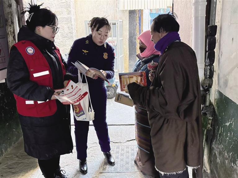 拉薩市消防救援支隊各級依托消防宣傳“六進”工作,以“敲門入戶”為抓手,瞄準自建房、老舊小區、托兒所、獨居老人群體等重點領域和人群,積極發動消防志愿服務隊、基層網格員開展消防安全宣傳,通過發放宣傳資料、理論講解、案例分析、實地隱患排查等方式,教育引導群眾掌握常見火災預防、安全用火用電用氣、安全燃放煙花爆竹、火場自救逃生等消防安全常識,提高其發現隱患、整改隱患的技能。