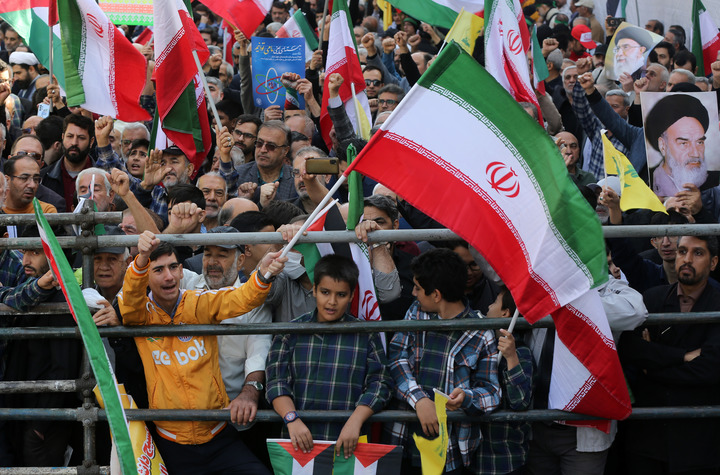 2025年11月4日,民眾在伊朗首都德黑蘭參加反美反以集會。當天,伊朗多地民眾舉行集會,譴責美國霸權和以色列的侵略行為。新華社發