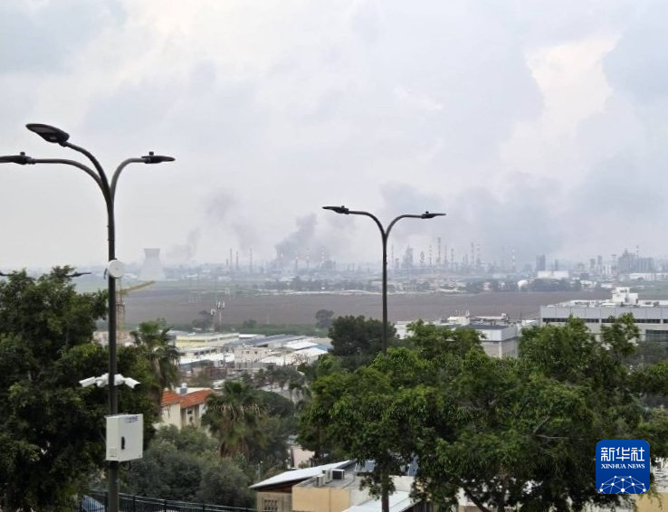 以色列第12頻道電視臺19日報道說,以色列北部城市海法的煉油廠遭襲,現場畫面顯示廠區冒出濃煙。