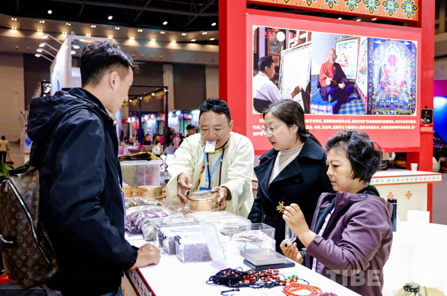 記者走進昌都展館,整個展館呈現藏族傳統(tǒng)建筑的典型特征,厚重的墻體、錯落有致的布局以及富有層次感的屋頂線條,精心融入康巴文化符號。昌都文旅攜9家非遺企業(yè),全方位展示唐卡、藏香、唐卡漆畫、民族手工飾品、蟲草、貝母、藏紅花等琳瑯滿目的文旅產品,進館參與互動、咨詢的游客絡繹不絕。