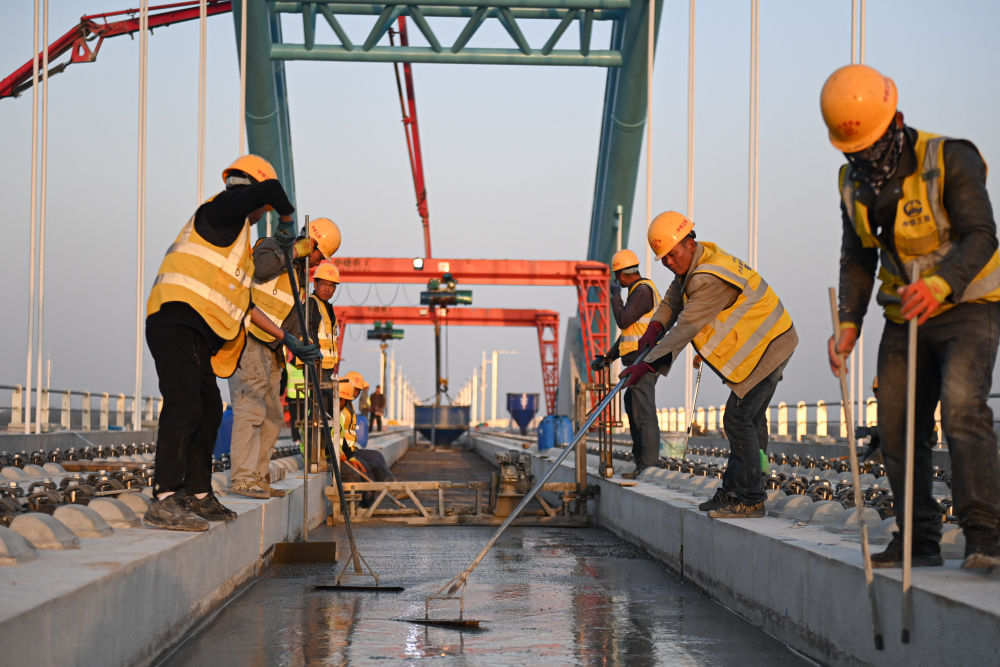 2024年3月20日,中鐵三局建設者在滬蘇湖鐵路東苕溪特大橋上施工。滬蘇湖鐵路起自上海虹橋站,途經江蘇省蘇州市,終至浙江省湖州市湖州站。項目建成運營后,將進一步完善區域路網布局,促進沿線經濟社會發展和長三角一體化高質量發展。新華社記者 黃宗治 攝