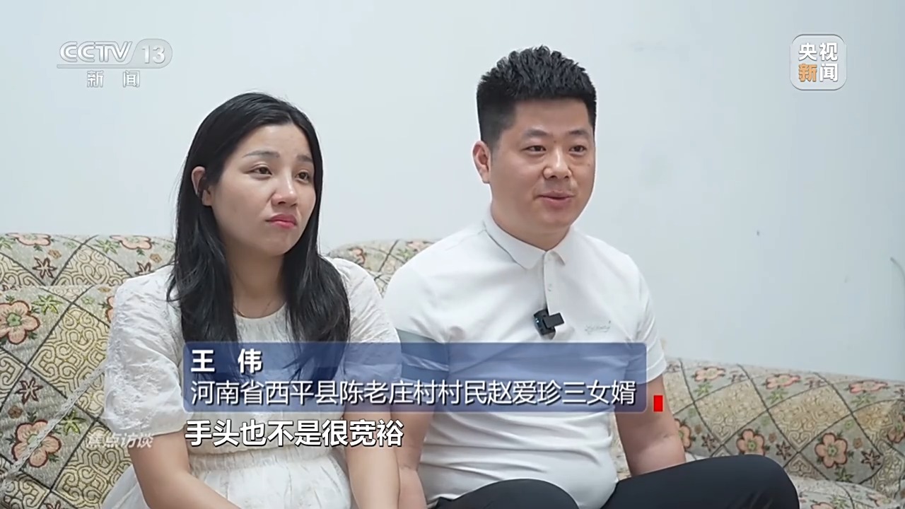 河南省西平縣陳老莊村村民趙愛珍三女婿 王偉:當(dāng)時我正在創(chuàng)業(yè),手頭也不是很寬裕,就跟親戚朋友借了11萬塊錢。當(dāng)時汝南縣的彩禮有16萬8的、有18萬8的,我跟女朋友商量了一下,就拿了11萬塊錢過來了。