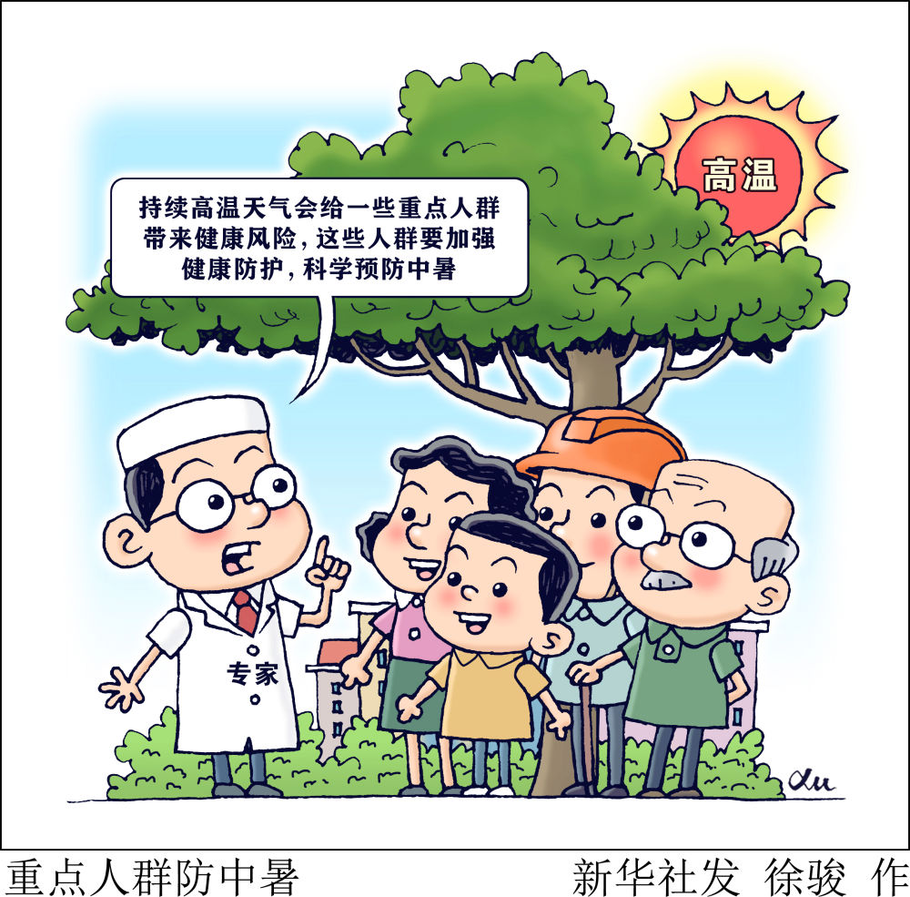 國家疾控局此前發布的《高溫熱浪公眾健康防護指南》明確,高溫熱浪健康防護的重點人群包括:敏感人群,如兒童、孕婦、老年人等人群;慢性基礎性疾病患者,如循環系統疾病、呼吸系統疾病、精神與行為障礙、腎臟疾病及糖尿病等患者;戶外作業人員,如農民、建筑工人、環衛工人、快遞員等人員。