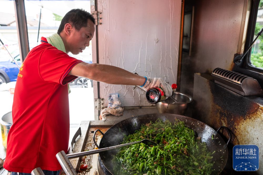 7月10日,在岳陽(yáng)市良心堡鎮(zhèn)望君洲村,志愿者在炒制菜肴。新華社記者 陳思汗 攝