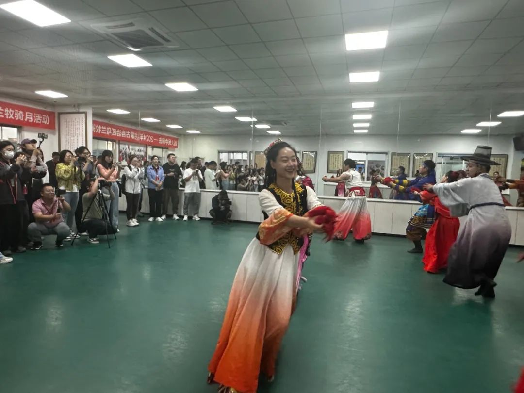 社區居民在烏蘭牧騎隊員指導下載歌載舞。