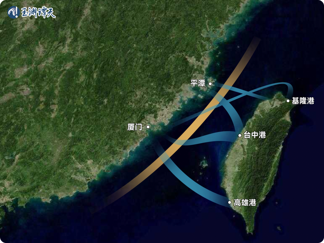 從圖上可以看到,要到達臺灣島西岸,大多數船只都需要穿過臺灣海峽中部海域。