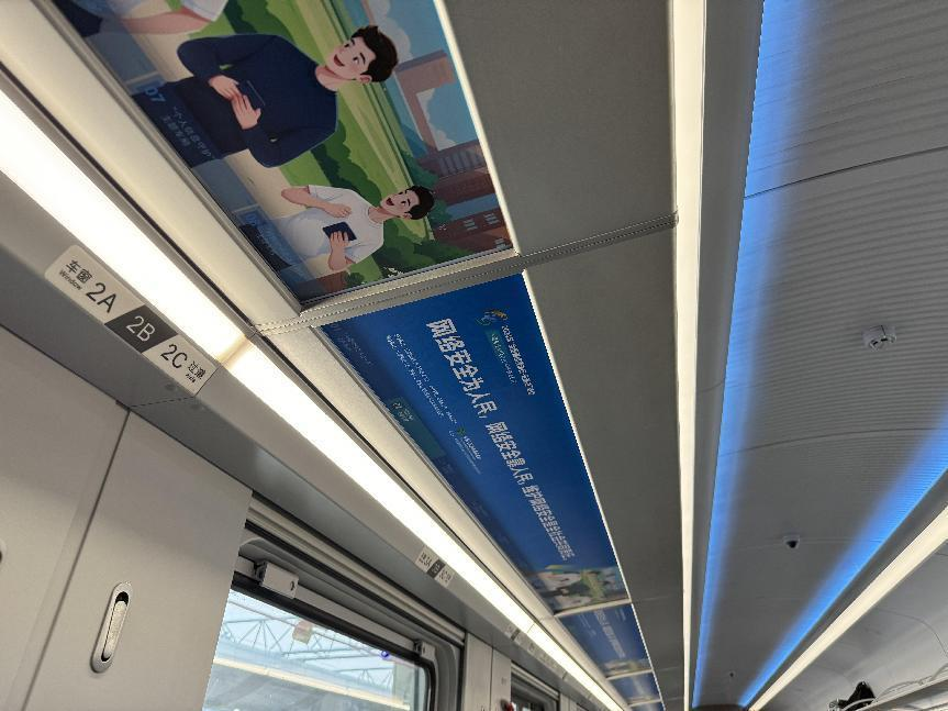據(jù)介紹,專列的8個主題車廂分別以“中國網(wǎng)絡(luò)法治三十年”“網(wǎng)絡(luò)安全”“數(shù)據(jù)安全”“未成年人網(wǎng)絡(luò)保護(hù)”“數(shù)據(jù)出境之旅”“反網(wǎng)暴凈網(wǎng)行動”“個人信息守護(hù)”以及“網(wǎng)絡(luò)空間命運(yùn)共同體”命名,通過鏡框海報、玻璃貼、小桌板貼、行李架彩貼、頭枕片、車內(nèi)LED信息屏等形式多樣的載體,全面展示網(wǎng)絡(luò)法治30年成就、網(wǎng)絡(luò)空間命運(yùn)共同體主張。讓乘客們在享受舒適旅途的同時,也能輕松學(xué)習(xí)到實(shí)用的法律信息。