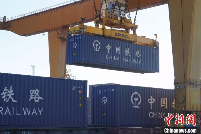 圖為龍門吊正將集裝箱從卡車轉移至中越班列。王以照 攝