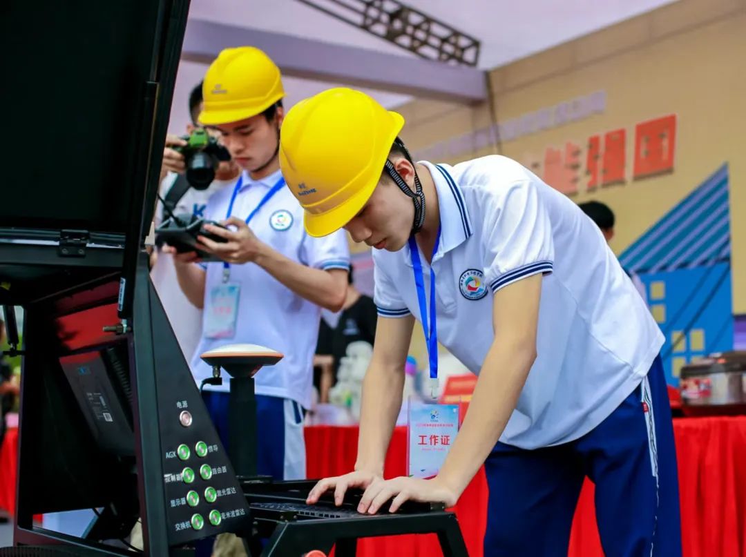 海南省機電工程學校學生在職業教育活動周上展示機電維修技能。