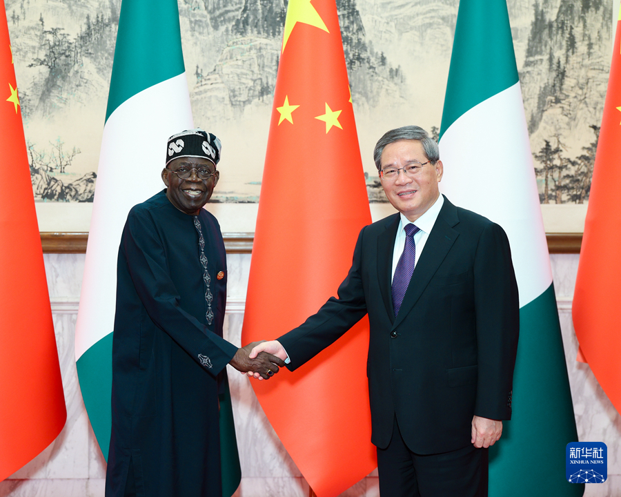 國務院總理李強9月4日上午在北京釣魚臺國賓館會見來華出席中非合作論壇北京峰會并進行國事訪問的尼日利亞總統提努布。