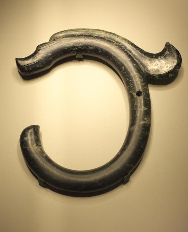要說紅山文化玉器中的代表作,當屬現收藏于中國國家博物館、學名為“碧玉C形龍”的“紅山玉龍”。1971年,它在赤峰市翁牛特旗賽沁塔拉嘎查重見天日,以墨綠色的身軀,高約26厘米的雄姿,一千克的重量和生動精美的雕琢,贏得了“中華第一龍”的美譽。