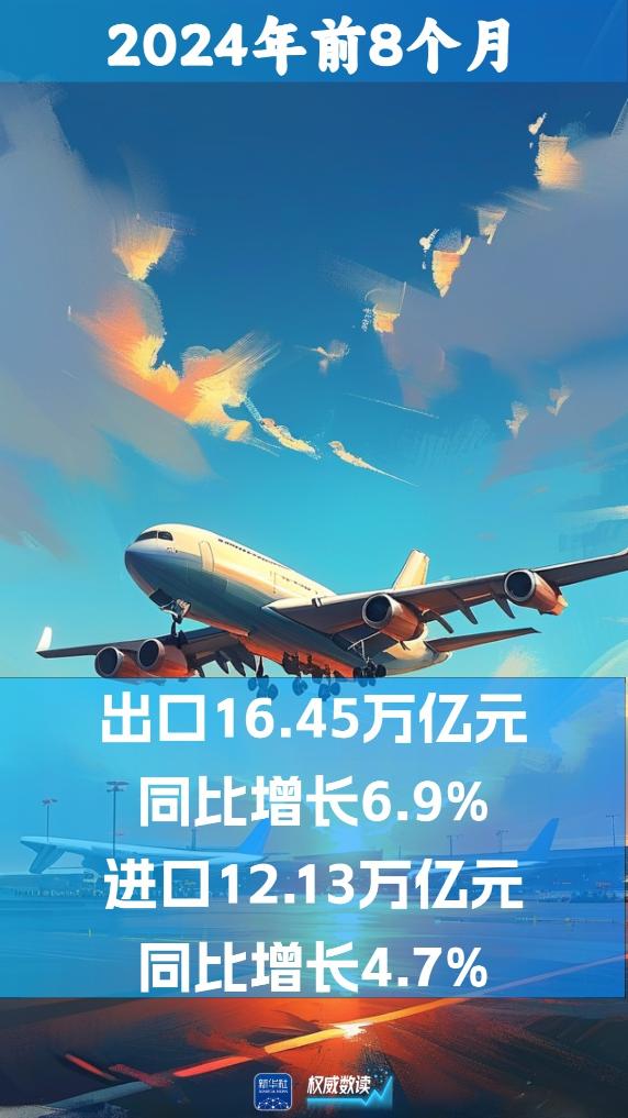 海關(guān)總署10日發(fā)布數(shù)據(jù):2024年前8個(gè)月,我國(guó)貨物貿(mào)易進(jìn)出口總值28.58萬(wàn)億元人民幣,同比增長(zhǎng)6%。其中,出口16.45萬(wàn)億元,同比增長(zhǎng)6.9%;進(jìn)口12.13萬(wàn)億元,同比增長(zhǎng)4.7%。