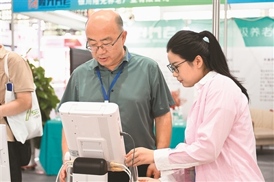 2024寧夏養(yǎng)老服務(wù)業(yè)博覽會(huì)近日在寧夏銀川市舉辦。本屆博覽會(huì)集中展示國內(nèi)外養(yǎng)老服務(wù)前沿科技和最新成果,推動(dòng)健康養(yǎng)老產(chǎn)業(yè)向更深層次、更寬領(lǐng)域、更全方位發(fā)展。圖為會(huì)上工作人員向參觀者介紹醫(yī)療產(chǎn)品。新華社記者 毛 竹攝