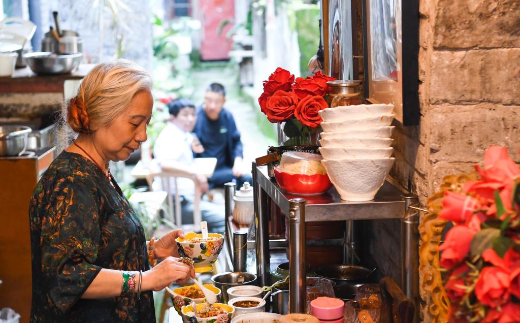 現在周英碧在山城巷經營著一家小吃店,旺季時每天能接待上百個客人。她最喜歡的事就是閑時和游客“擺擺龍門陣”,給他們講一講山城巷的故事。