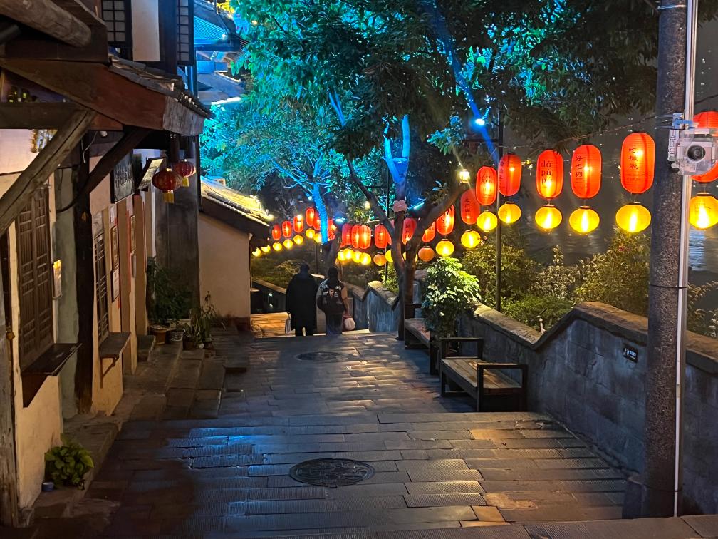 如今,山城巷具有百年歷史的老教堂成為一幕幕沉浸式話劇的舞臺;廢棄的小學教室成為藝術展廳和文創品商店;往日的老院壩成為供游客圍爐煮茶、看演出的“壩壩茶館”;老街的裝飾中還加入了霓虹燈等新潮元素,成為游客的熱門打卡點。