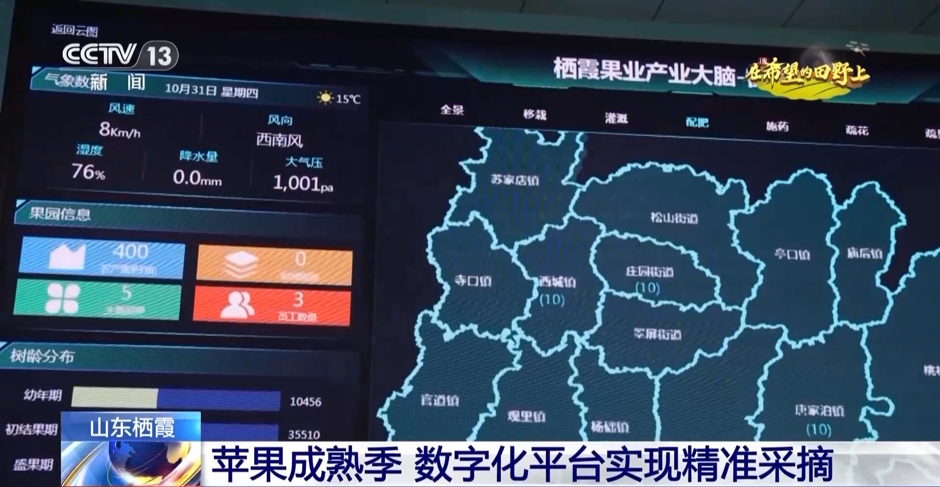 棲霞市供銷合作社聯合社負責人 李國勇:通過這個大屏,我們可以清楚地看到果樹的生長情況,平臺也會將果樹生長情況相關信息通報給果農進行精準采摘。