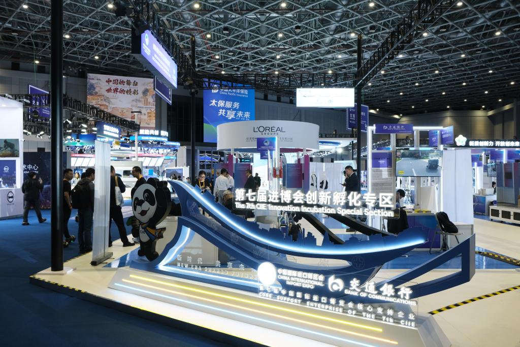 這是11月5日拍攝的第七屆進博會創新孵化專區現場。新華社發(周心怡攝)