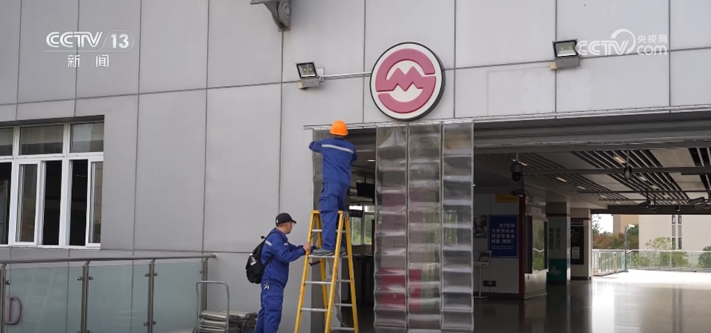 在上海軌道交通11號線白銀路站1號口,物業師傅們正在安裝擋風門簾。檢修人員也第一時間排查空調等設備,并做好防凍應對措施。