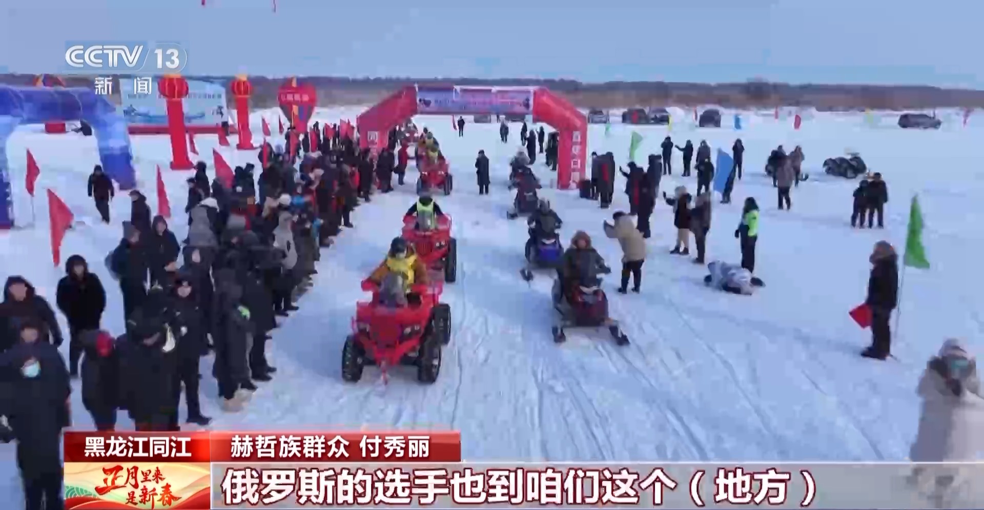 赫哲族群眾 付秀麗:不光是我們自己喜歡玩兒,俄羅斯選手也到咱們這參加比賽,騎我們生產的雪地摩托車,感覺特別颯。