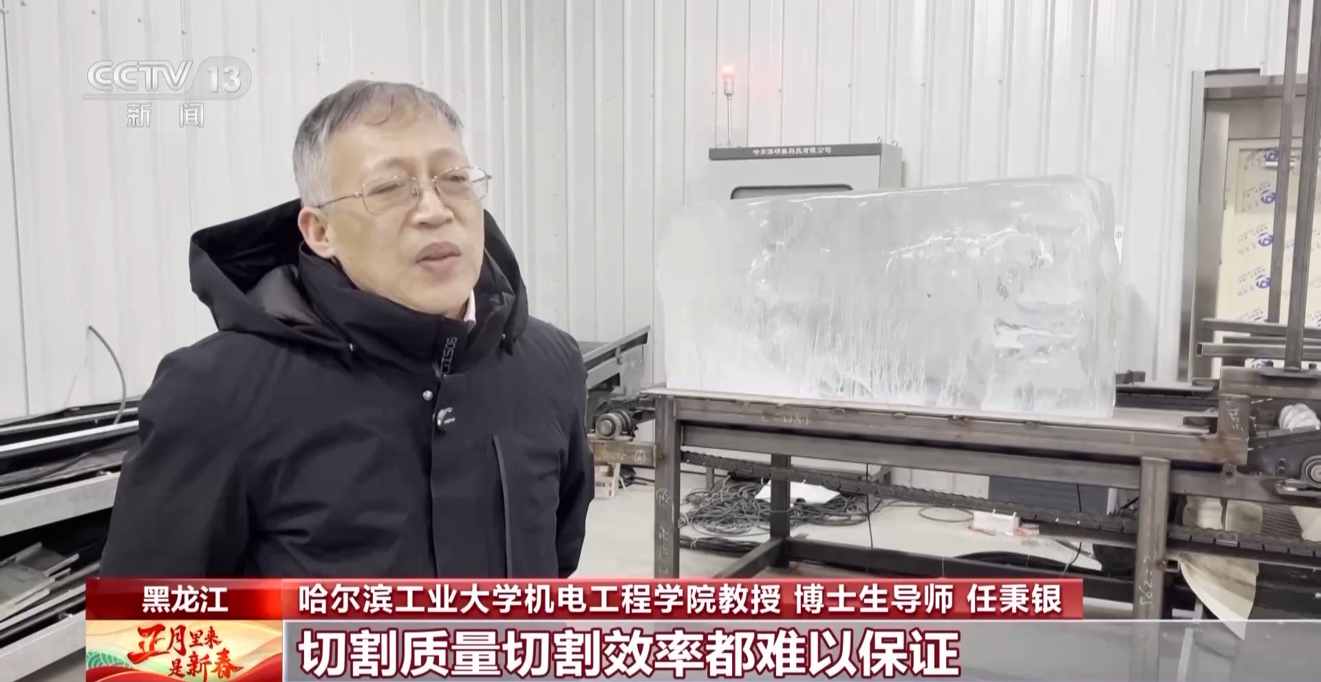 哈爾濱工業大學機電工程學院教授、博士生導師 任秉銀:這么多年來建冰雕設施用的冰一直都是人工在切,使用手工鋸,切割質量切割效率都難以保證。在這種情況下,對智能自動化生產標準冰砌塊的需求十分迫切。