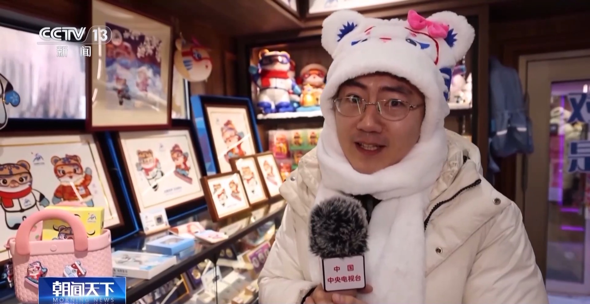 總臺記者 張程:我發現第九屆亞冬會的文創產品有兩個特點,第一就是完美地嵌入到我們的生活當中:比如說我現在頭上戴的這頂妮妮圖案的帽子,采用了石墨烯加熱技術,保證你在戶外也能夠抵御“爾濱”的嚴寒。